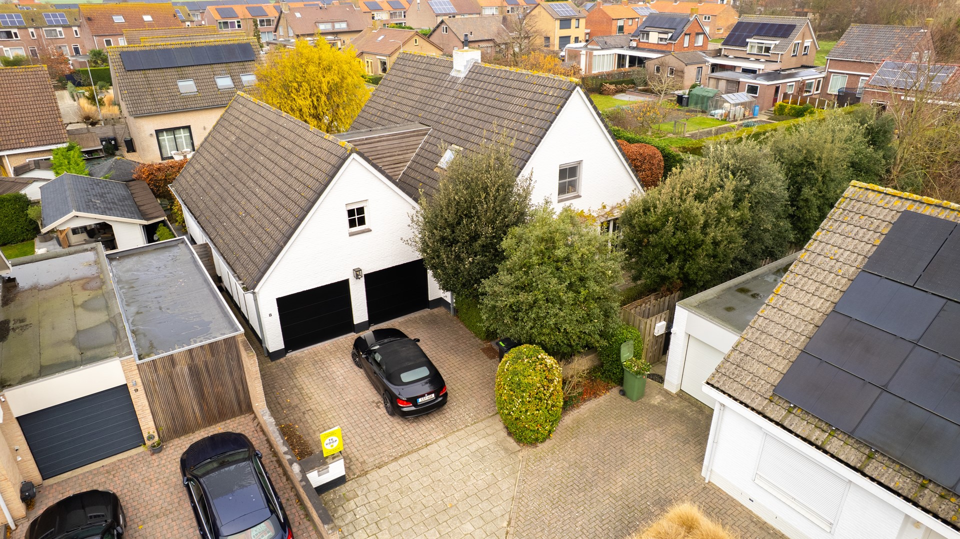 De tuin loopt rondom de woning en biedt op elk moment van de dag een zonnige plek om te ontspannen. Er is een berging aanwezig voor tuinmeubilair, fietsen of tuingereedschap. De oprit biedt ruimte voor meerdere auto’s en via de dubbele garage is er directe toegang tot de woning.