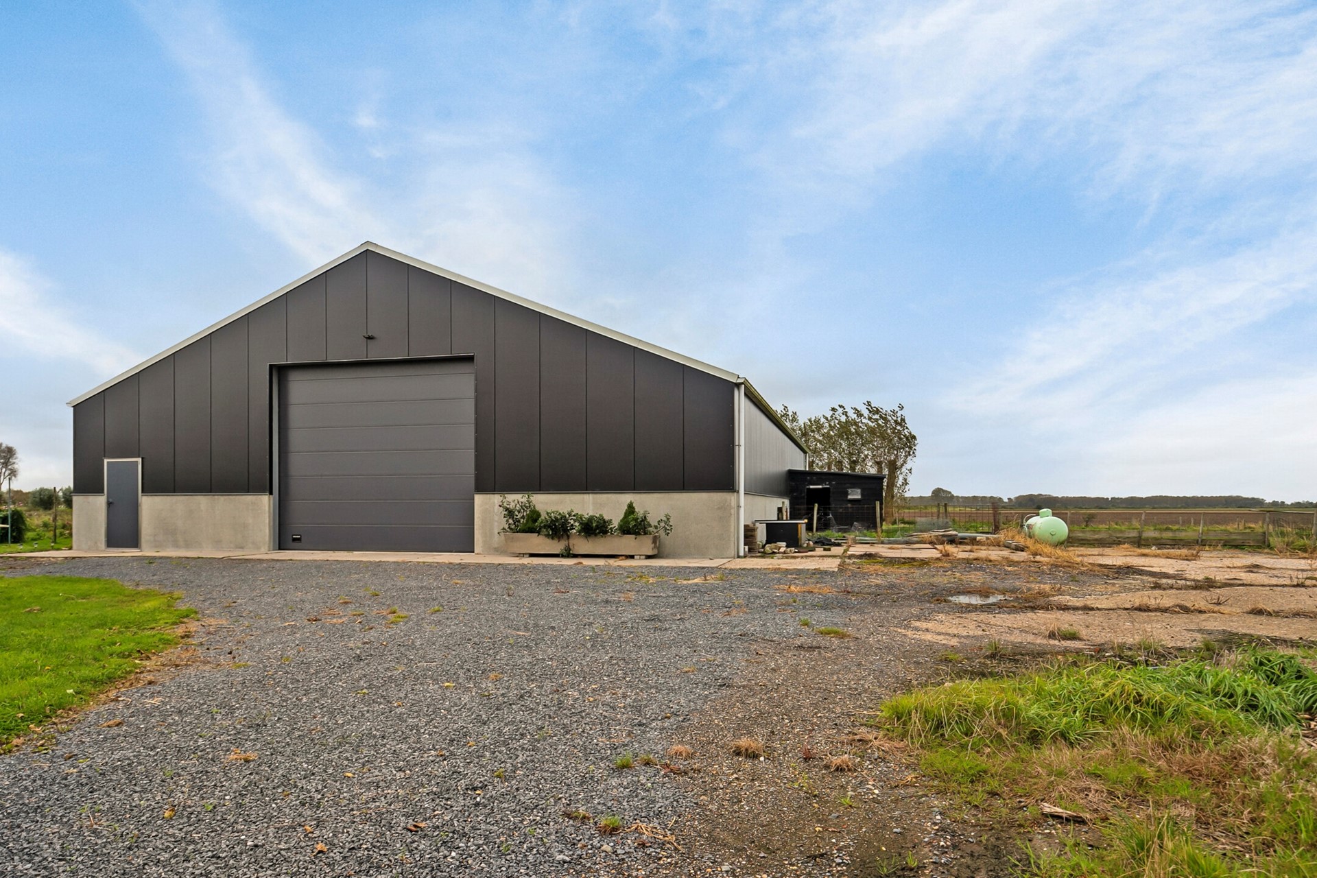 - Schuur in 2020 van 343 m2 voorzien van elektra