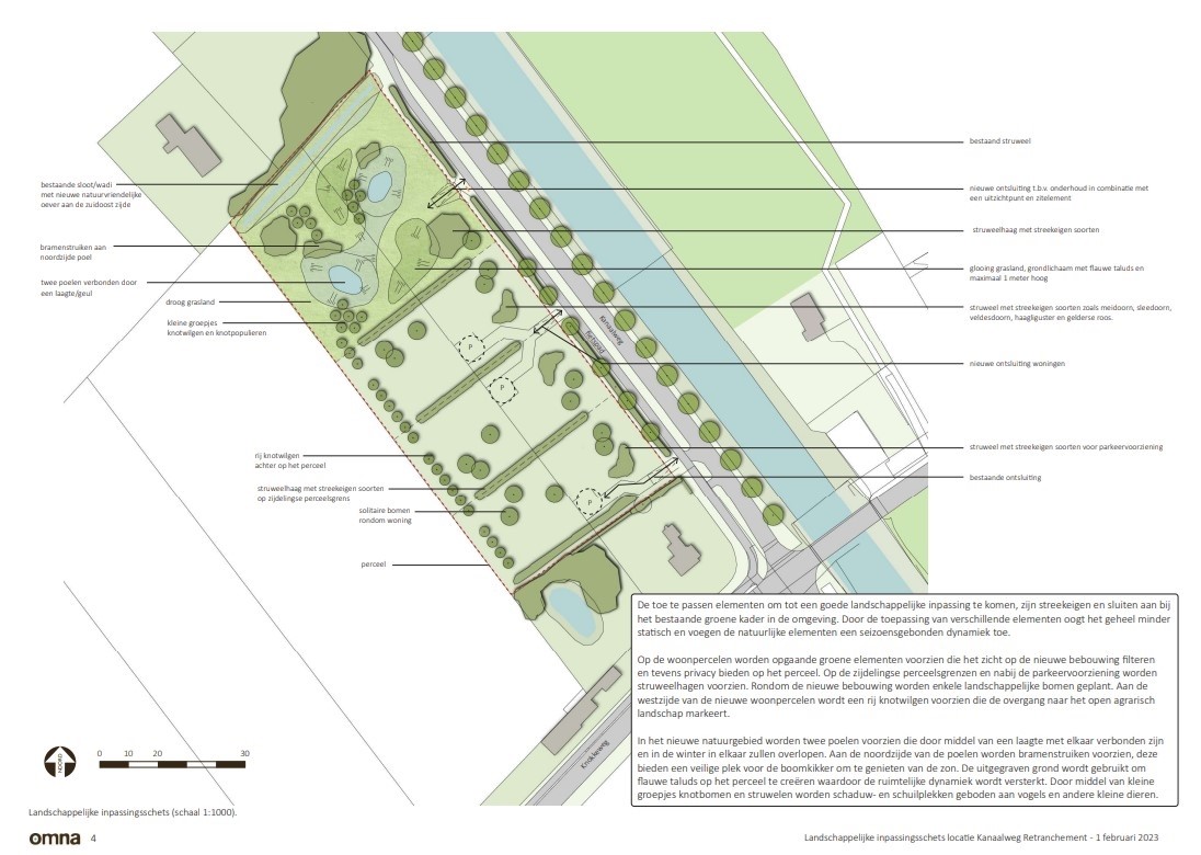 De kavels zijn gelegen in een prachtig aangelegd natuurgebied dat niet openbaar toegankelijk is, maar wel zorgt voor een serene en natuurlijke omgeving. Het landschappelijke inrichtingsplan voorziet in diverse natuurlijke elementen zoals:
