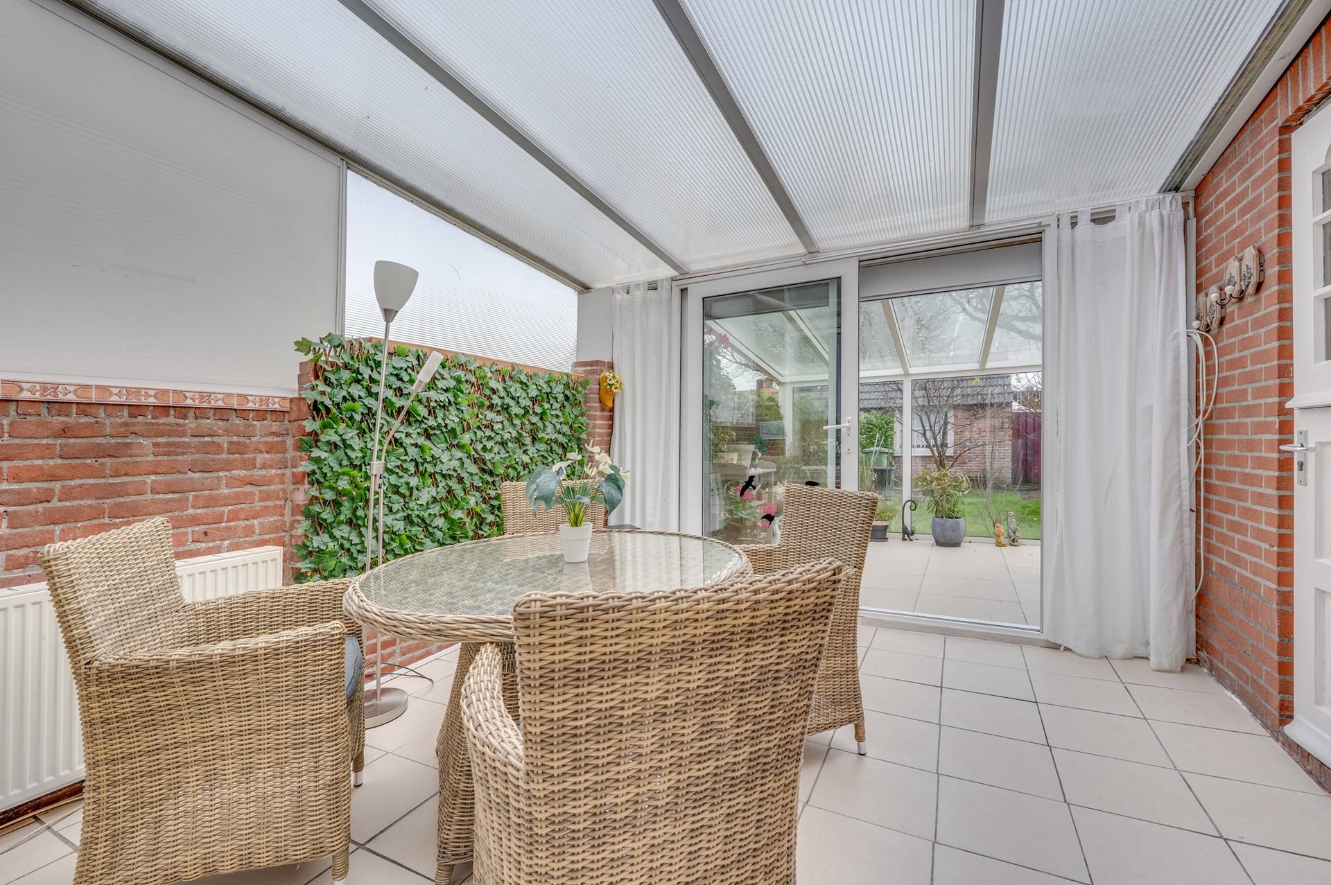 De serre vormt een mooie aanvulling op de leefruimte en is een heerlijke plek om het hele jaar door te genieten van het buitengevoel. Vanuit de serre is tevens de overkapping bereikbaar, ideaal voor het creëren van een beschutte zitplek.