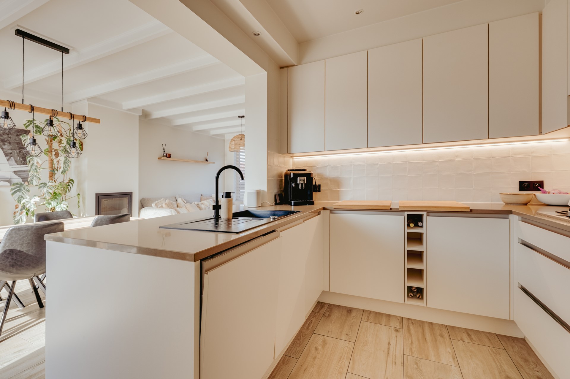Via de entree betreedt u de hal met meterkast, toilet en trapopgang naar de eerste verdieping. Vanuit de hal heeft u toegang tot de lichte en sfeervolle woonkamer. Aansluitend bevindt zich de keuken, die praktisch is ingericht en in verbinding staat met de rest van de leefruimte.